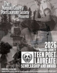 This is an exciting opportunity for a deserving junior who will receive a $500 scholarship and an affirmation as the county’s next Teen Poet Laureate during an awards ceremony in May of this year. The Nassau County Teen Poet Laureate will hold the position for one year (from May 2026 to May 2027) and will work closely with the Nassau County Poet Laureate Society to help establish online and in-person opportunities for teens in our county interested in poetry to gather, share work, and celebrate the arts. All details and application guidelines are included on the downloadable PDF.
